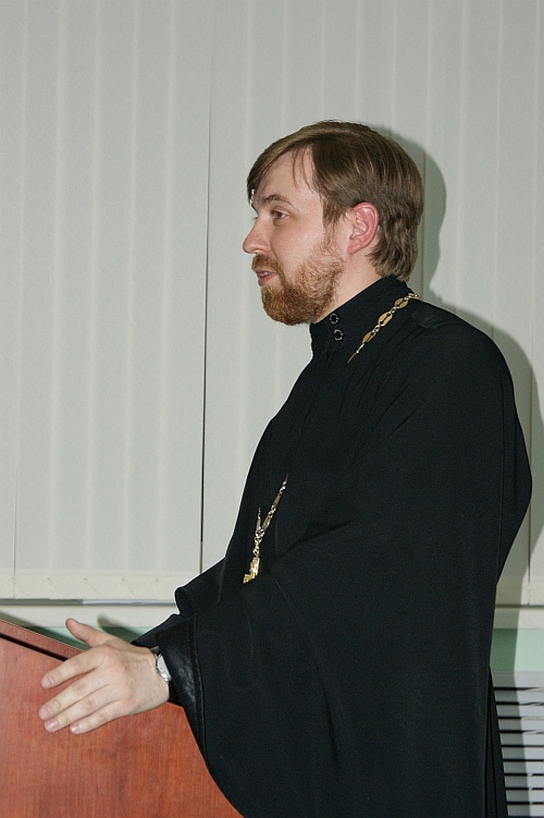 Лекцию по архитектуре храмов проводит отец Дионис.